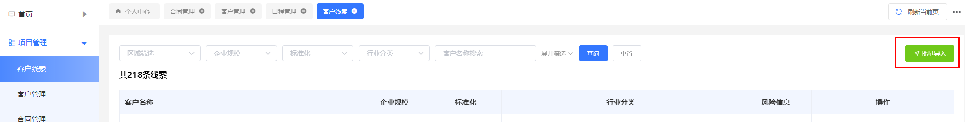 3.1客户线索:将客户信息进行导入,需要下载模板。信息导入成功后,分配给相应的负责人,或者自己去认领客户。