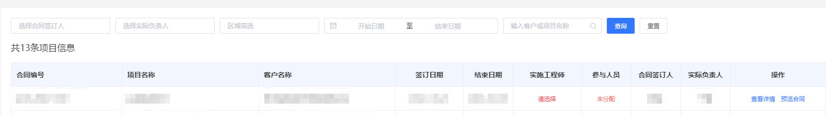 4)在未分配项目中分配项目实施工程师,销售人员在销售项目中去跟进,工程师在项目管理中跟进;