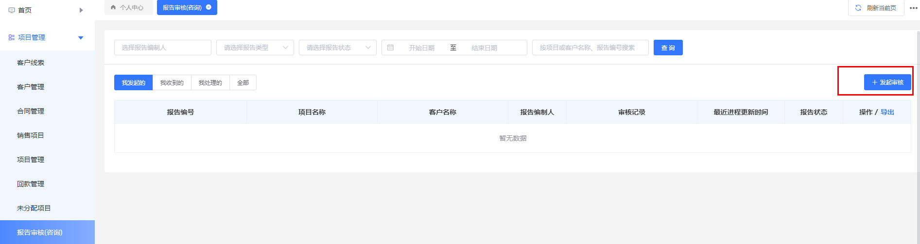 6)项目结束后可能会有报告审核,发起报告审核,由审核人员去审核。