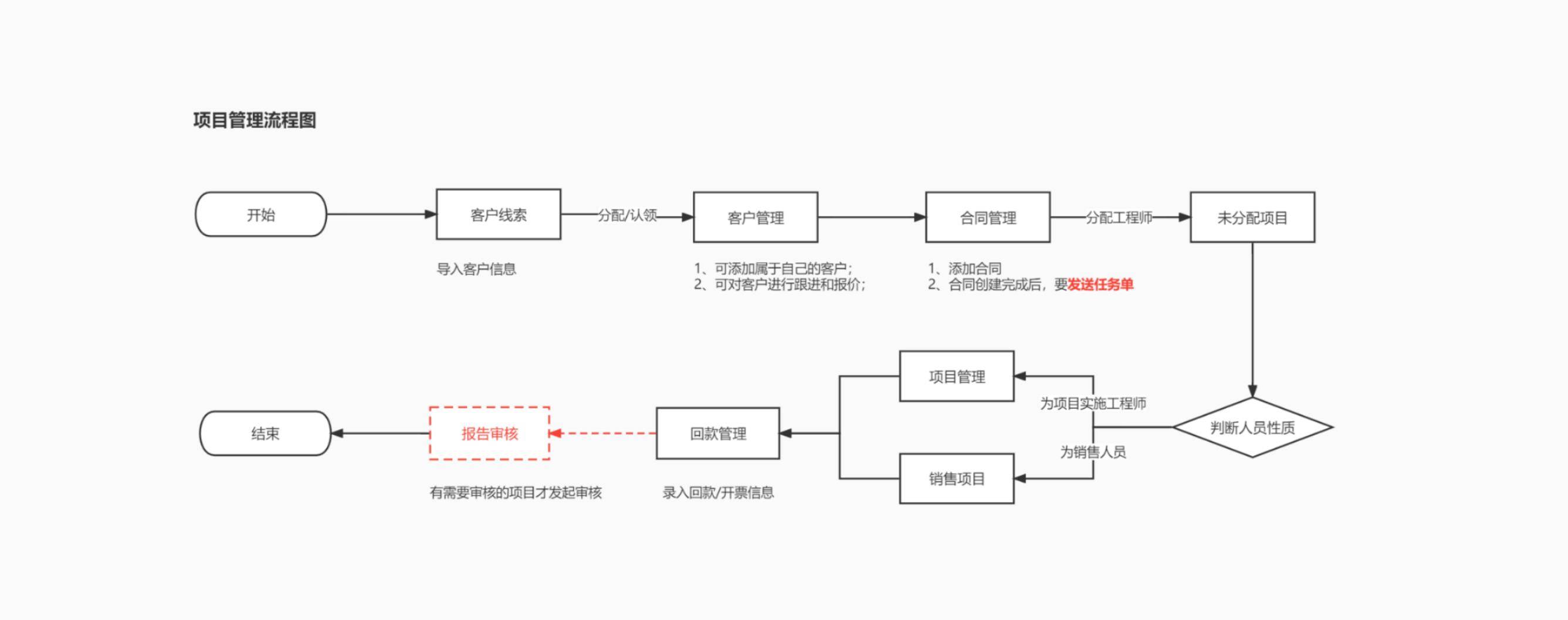 5)跟进完之后是有项目的回款和开票信息的环节,形成闭环;