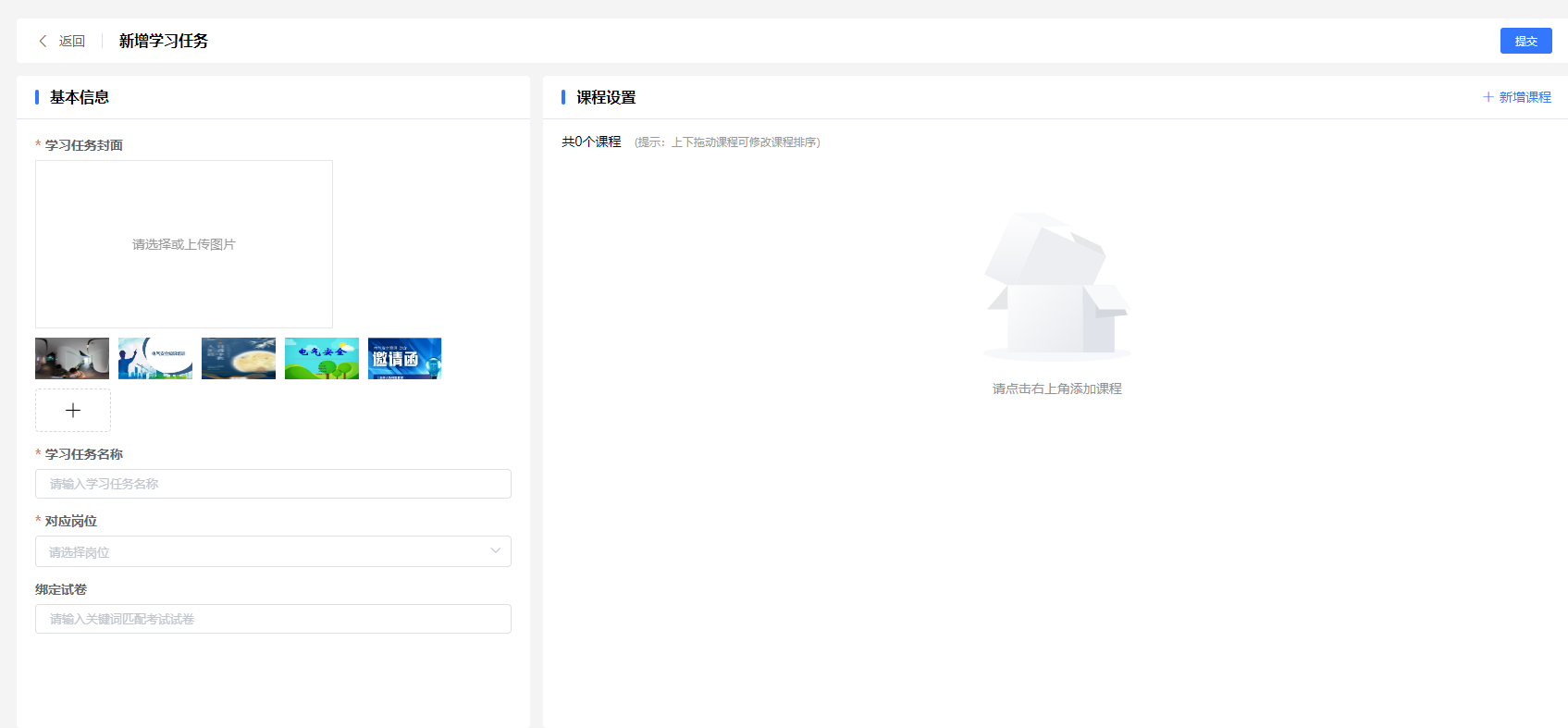 4.1 设置学习任务,点击“新增学习任务”,设置封面、学习任务名称;