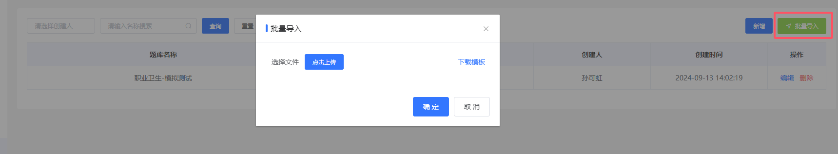 3.1 提前设置考试的试题,点击“新增”,同上,可直接创建题目,也可从题目中选择题目。