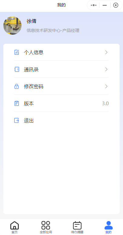 3.4我的:展示个人的信息,以及公司人员的通讯录。
