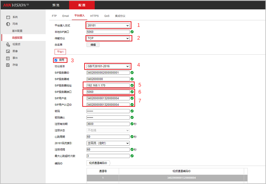 gb28181协议摄像头配置如下(以海康摄像头为例):