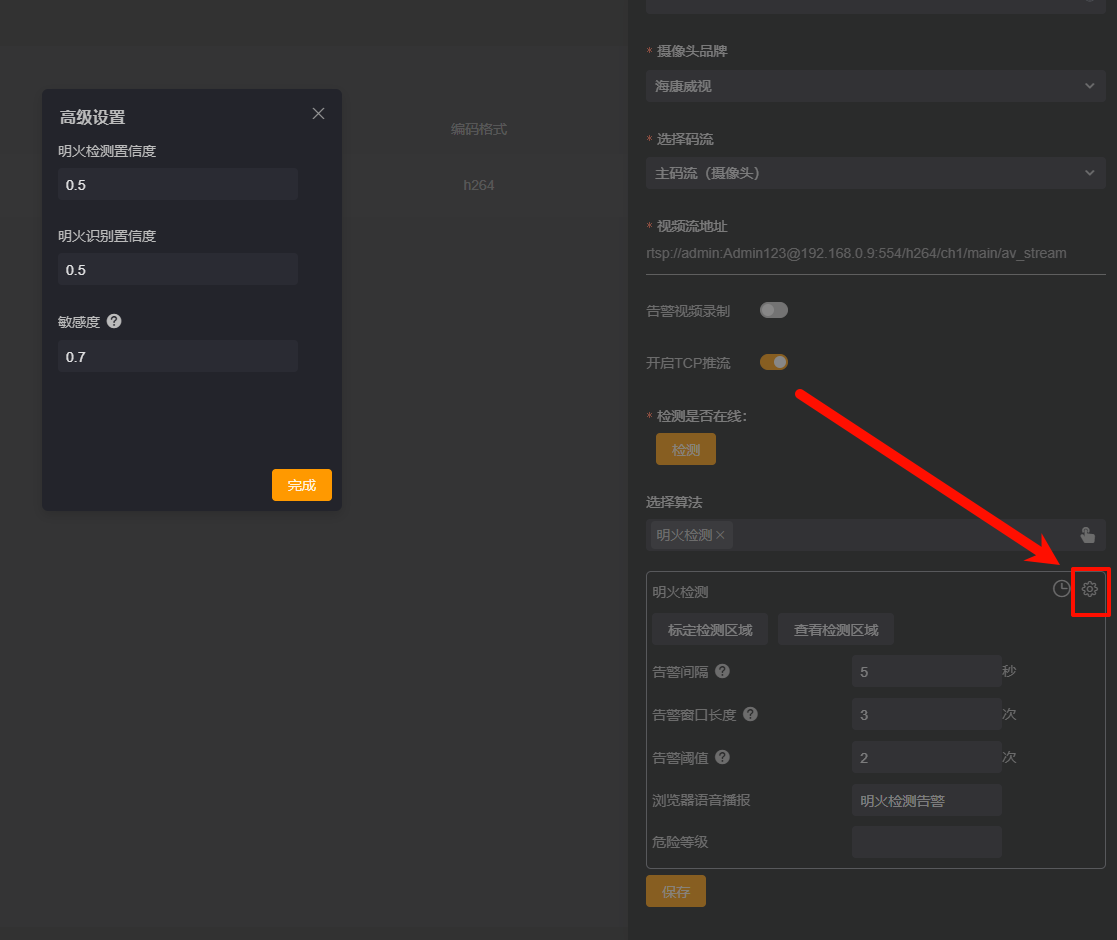 - 用户可根据实际需求调整算法置信度阈值。在算法配置界面,点击【高级设置】展开选项,设置置信度阈值。阈值越低,算法灵敏度越高,减少漏报,但可能增加误报。反之增强算法判断严格性,减少误报,但可能增加漏报。