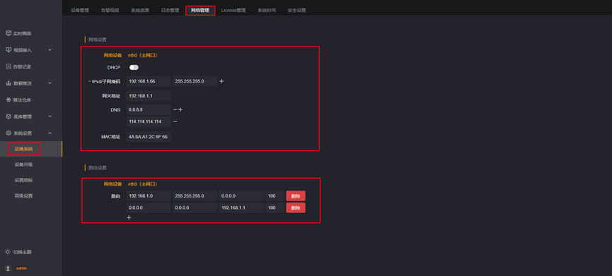 - 在左侧导航栏点击【系统设置】-【运维系统】,横向页签点击【网络管理】;