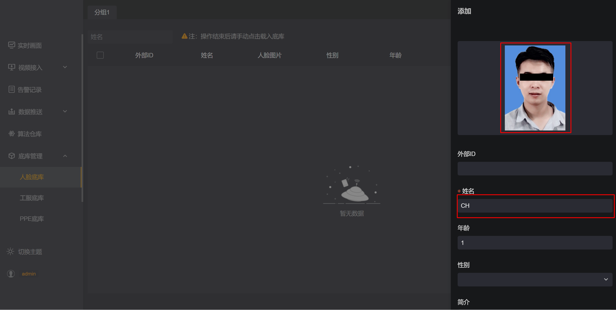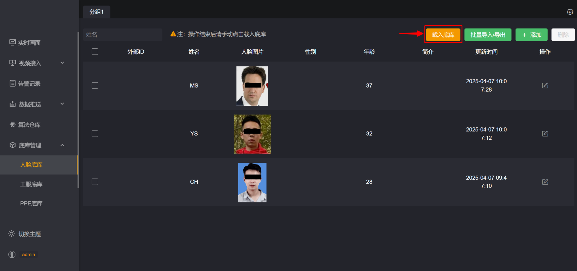 第五步: 完成后点击【载入底库】,使人脸底库生效。